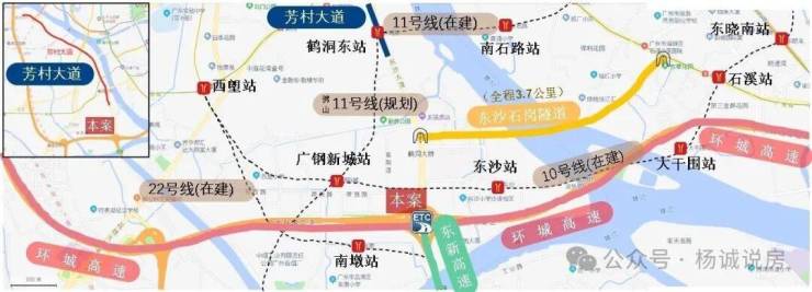 距离项目约700米,目前后通段土建工程累计完成92%,4座车站均已封顶并开展机电施工。开通后3站速达广州南站,5站直达番禺广场,进一步增强南向联通能力。
