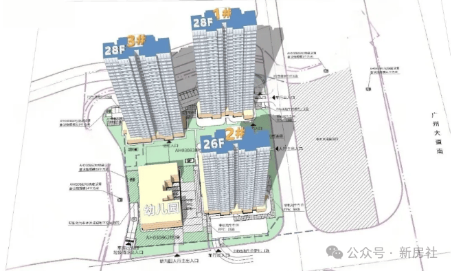 广府萬宸是中海在广州的首个萬字系,甚至可能是全国第一座。一共规划了3栋住宅,全都是南北对流的板楼,每栋26-28层不等,预计全盘货量150套左右。全盘只做了一个户型——约160-180平四房,因此圈层非常纯粹,不存在大户型和小户型混住的情况