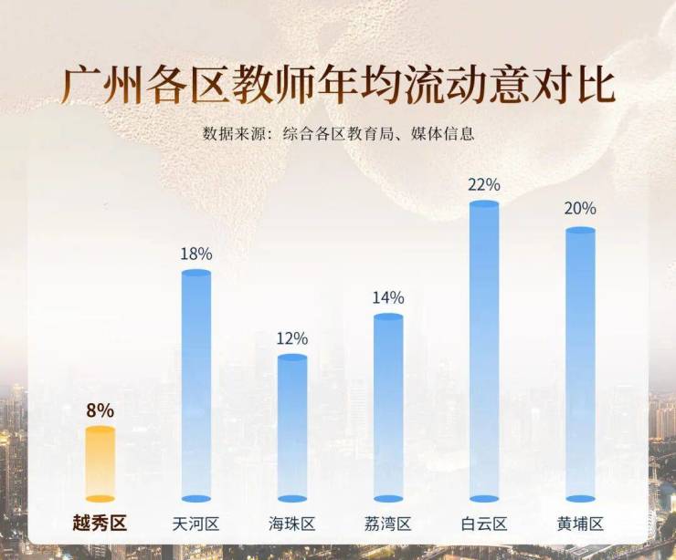 名校的灵魂在师资,师资的稳定是质量的保障! 据统计,越秀区省一级小学教师5年流动率均值仅为8%,远低于全市15%的平均水平。 这一关键隐性指标,有力印证了越秀区教师队伍的高度稳定性。对于视长期口碑为生命的老牌名校而言,极低的教师流动率正是其教学质量持续领先、教育生态健康成熟的底层逻辑。