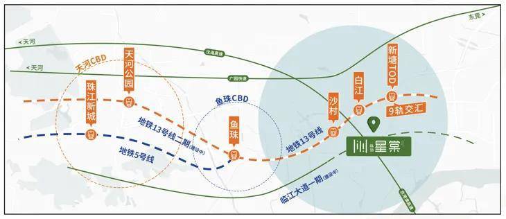 项目雄踞广州东进战略要冲,坐拥新塘TOD枢纽核心区位,扼守东江新城千亿级旧改门户。与老黄埔中心区仅一站之隔,至珠江新城约34公里(车程40分钟),三大高速动脉无缝衔接黄埔天河双城繁华。