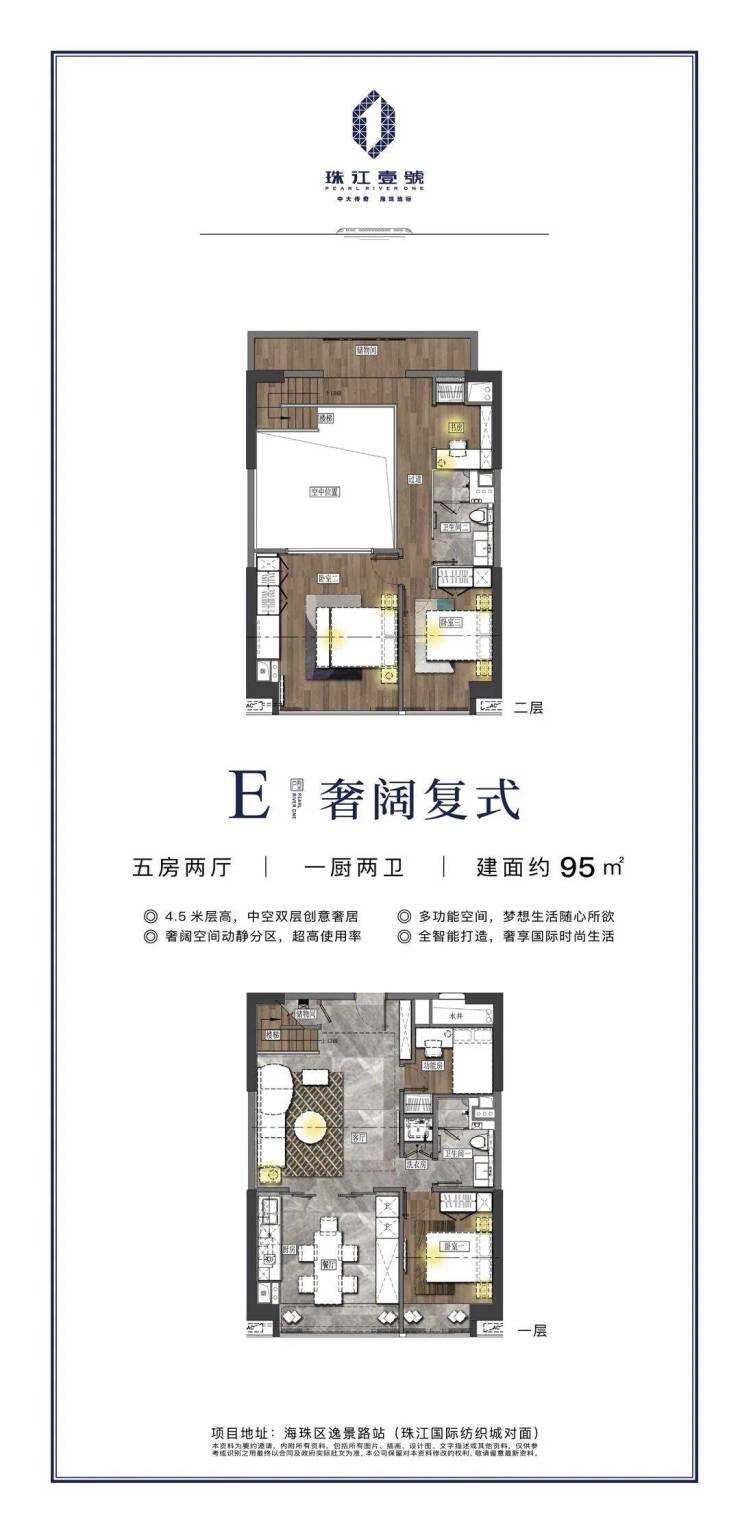 珠江壹号主推49-95㎡时尚LOFT空间,4.5米层高,使用率非常高,买一层可享受两倍的奢阔空间。而且户型多样,总价可控,能满足各阶段的住房需求。
