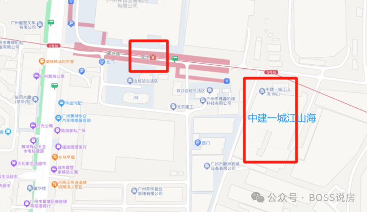 而5号线双沙站距首开的6号地块仅约50米,导航34分钟直达珠江新城;