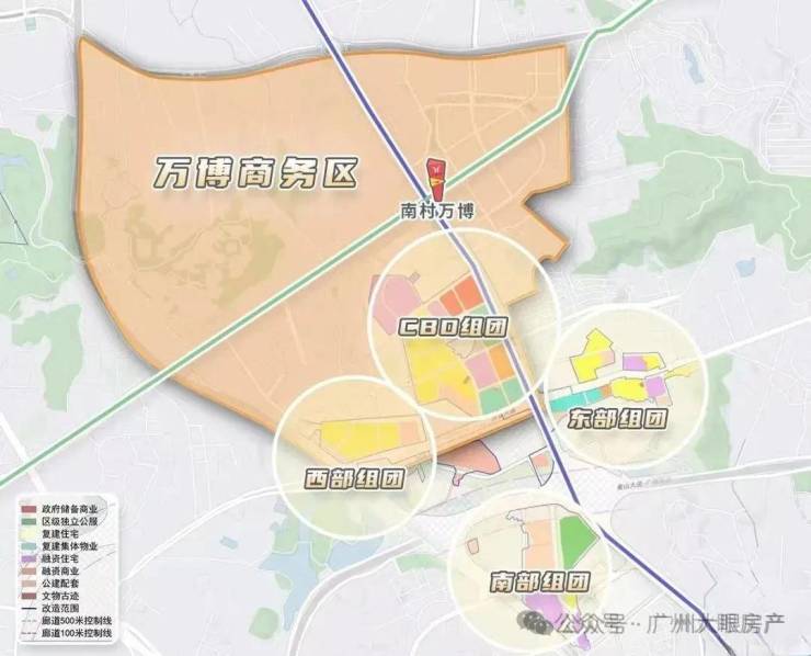 根据规划,整个万博城大致可以分为4个组团,每个板块特性不尽相同:CBD组团、东/西部组团、南部组团三部分。