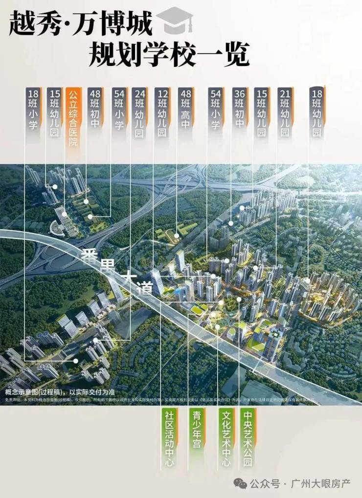 54班小学为里仁洞小学原址改扩建,预计2026年交付,36班初中为越秀新建,预计2025年竣工,