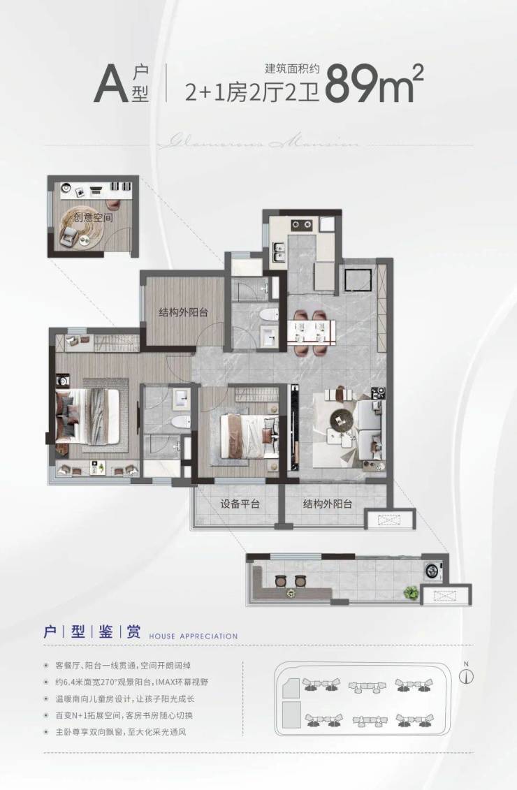 产品面积:约 89-162㎡创变三至五房