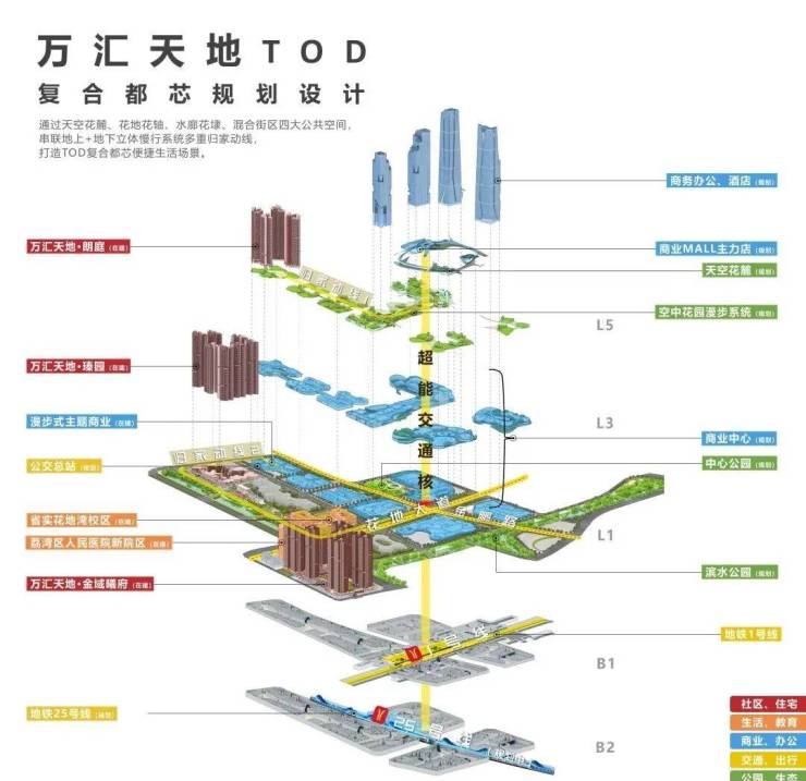 整个板块以“产、商、住”一体化新城市中心为目标,旨在成为国家战略支点及湾区极点辐射的重要组成部分。区域内规划有多个大型商业综合体(如双太古广场)、办公集群以及丰富的公共休闲设施。