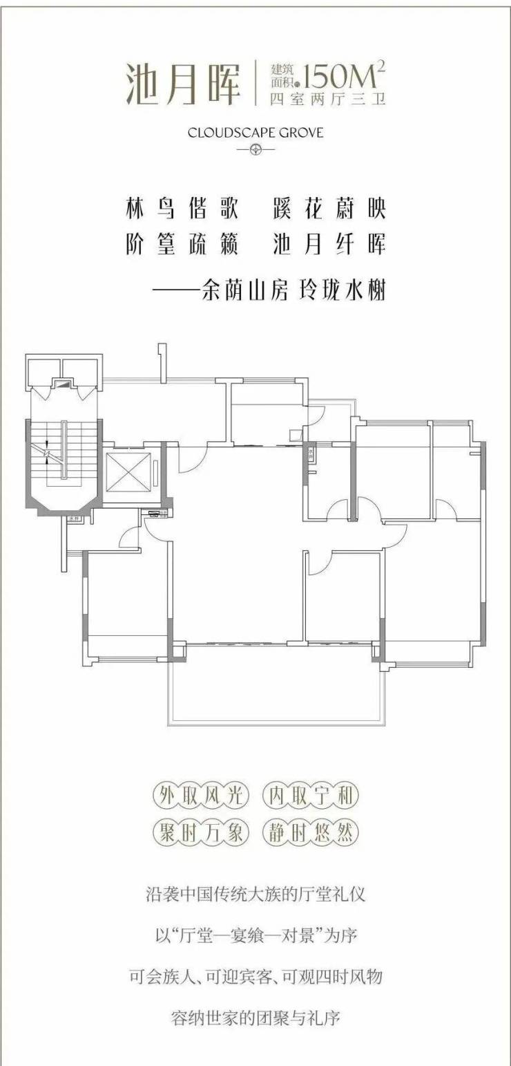 建面约150㎡ 4房3卫双主套,南北对流。