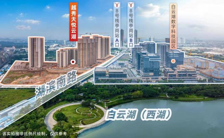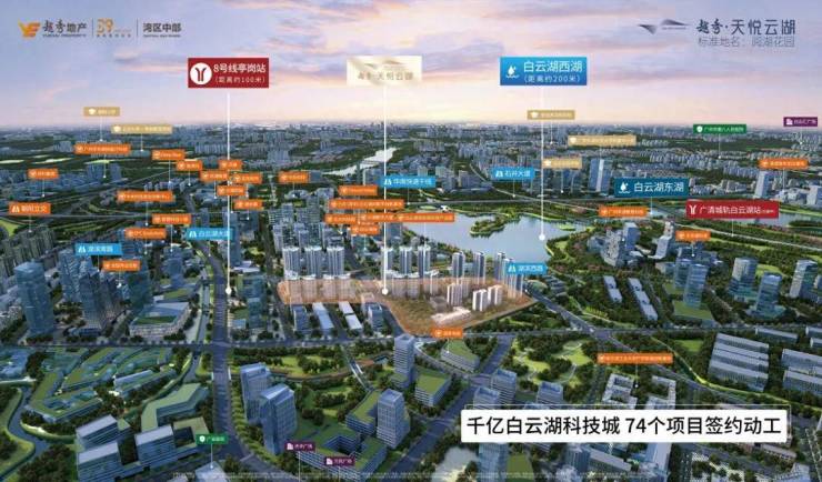 越秀天悦云湖坐落于白云湖数字科技城核心启动区,这里不仅是白云区“一园两城三都四区”重大平台之一,更是广州“数字中国”实践高地。目前,片区已引入百度智能云、中关村信息谷、清华力合科创等20余家科技巨头,产业集群效应显著。随着黄金围大道、青创片区道路等基建加速推进,区域成熟度持续提升。