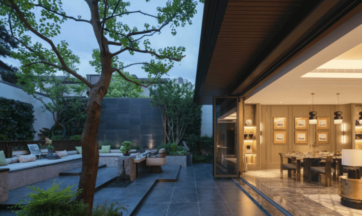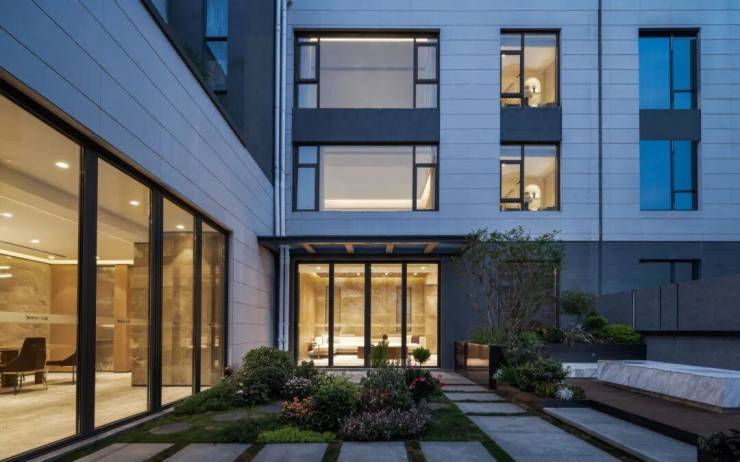 空间更宽阔的城央院子,与自然环境的互动也包含了不同的形态。一层庭院与自然环境深度交互,在这座城市中央的“珍贵绿洲”,时常可见“有翩翩飞鸟,息我庭柯。”上方景观露台视野开阔,仰之弥高,晴朗的夜晚,或许可观星空斑斓。