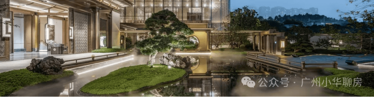 项目打造约6.8万㎡中式园林。“礼道-见松-步水-游廊-归堂”每一平米,都是对品质生活的雕琢