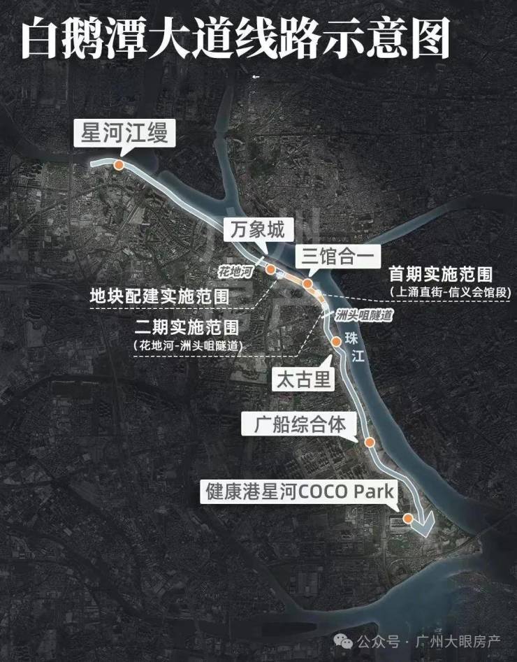 未来通过白鹅潭大道约4公里直达白鹅潭CBD腹地