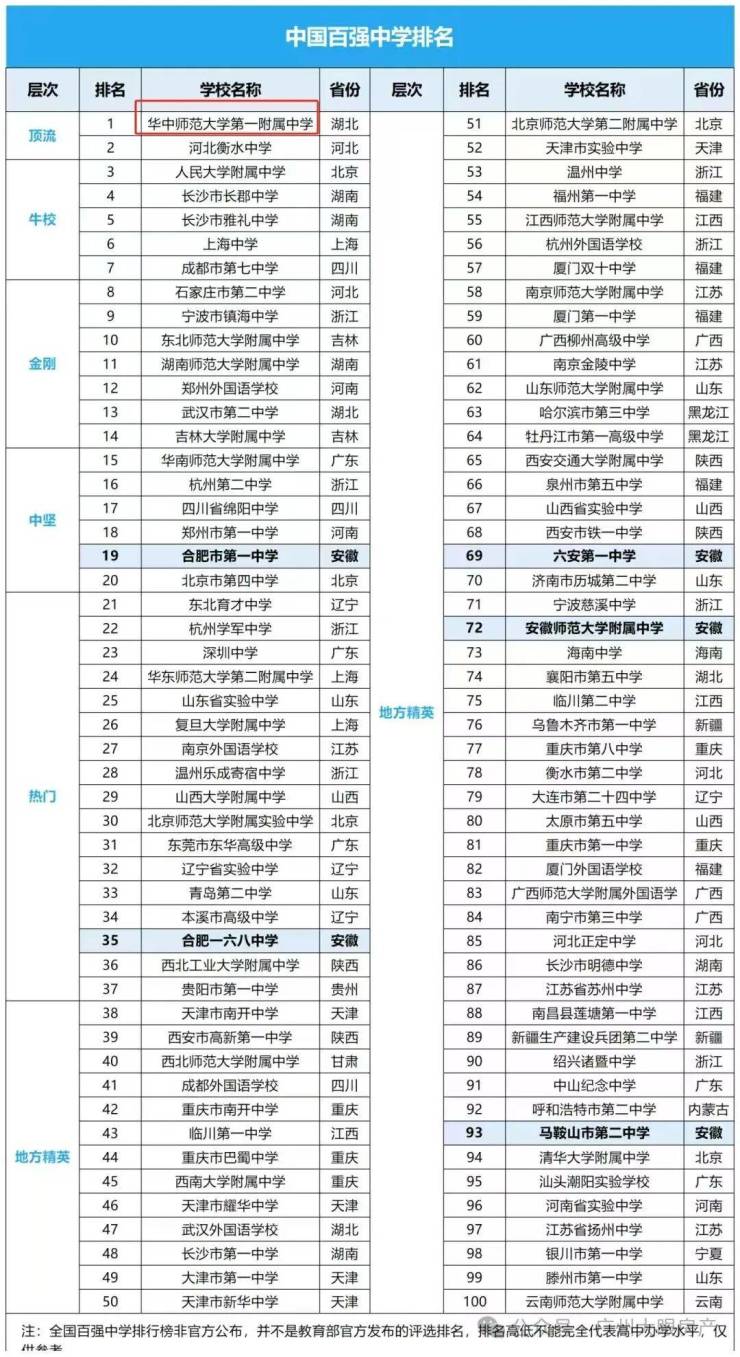 2018年起,已经连续6年霸榜全国百强中学首位。