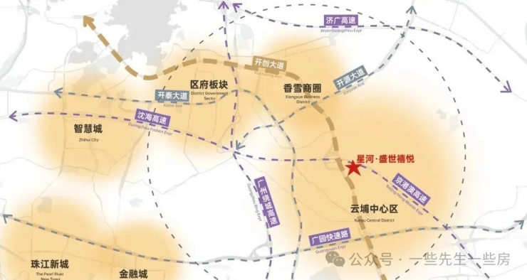 项目位于黄埔云埔板块,紧邻科学城黄金动脉开创大道,北接萝岗立交,南连广园快速路,30分钟直达珠江新城。作为广州“东进”战略核心区,云埔聚集了南方电网、创维、日立IT等200+高新企业,2023年产值超1900亿,占广州GDP近10%。但当前板块仍以工业园、物流园为主,城市界面“半城半厂”,需依赖旧改提速(如里仁洞村改造)提升居住氛围。