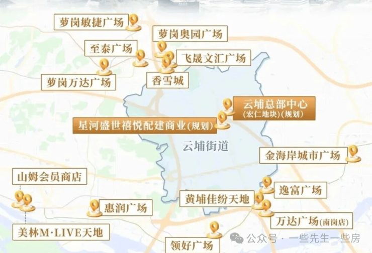 商业:自建3000㎡社区底商+3.3万㎡集中商业(规划引入超市、影院),5公里内覆盖萝岗万达、香雪城(在建);