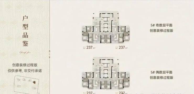 226/227㎡户型特点: 4T3户,均有独立电梯及门厅互不扰; ·8*8.4m大方厅,宽敞大气; ·超款客厅落地景观面,客厅、阳台、众数套房可望 江望琶洲总部及广州塔,景观优势(无主阳台); ·有独立工人房但无赠送平台; ·主卧270°景观转角飘窗,800mm飘窗可打;