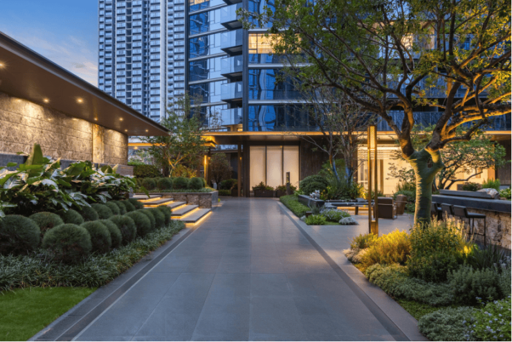 从酒店式艺术门楼启程,归家之路充满仪式感。项目传承岭南造园精髓,在繁华都市中营造主题园林,让业主漫步园中,尽享自然与艺术交融的雅趣。