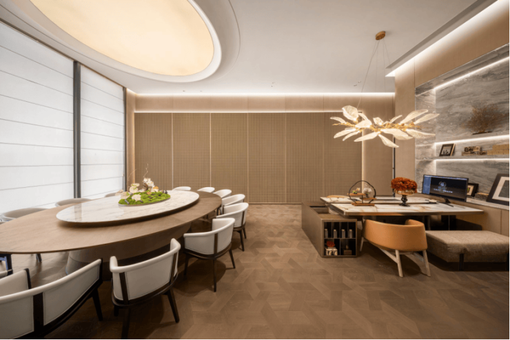 除此之外,车库以星光顶灯序列指引,致敬每一次归来礼序;墙面甄选通体岩板铺就,以非凡质感承托层峰气度。这座兼具艺术性与功能性的空间即将启售,以不凡质感,先于座驾,印鉴塔尖身份。