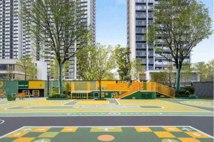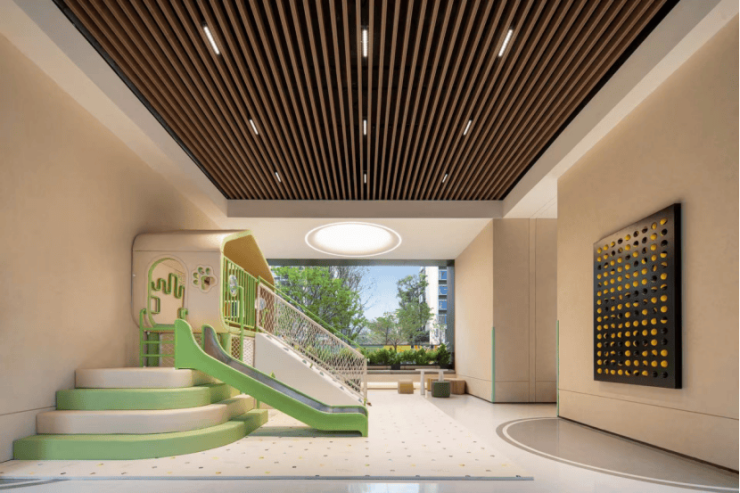 孩子们的欢笑,是社区最动听的背景音。专属的「童梦趣岛」依地形而建,成为一个充满探索乐趣的复合活动空间。从挑战勇气的攀爬区,到激发创意的黑板墙,再到欢声不断的滑梯,这里满足着不同年龄段孩子的户外幻想。而一旁贴心设置的家长看护区,让陪伴与社交自然发生,照看孩子的时光也变得从容安心。