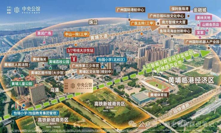 💥醇熟城市界面,配套所见即所得:中央公馆地处老黄埔旧区府中芯地段,享受成熟区域带来的现成红利。