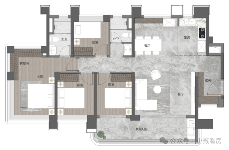 建面约119㎡四空间两厅两卫 南北通透|灵动宽厅|独立入户玄关|步入式套房