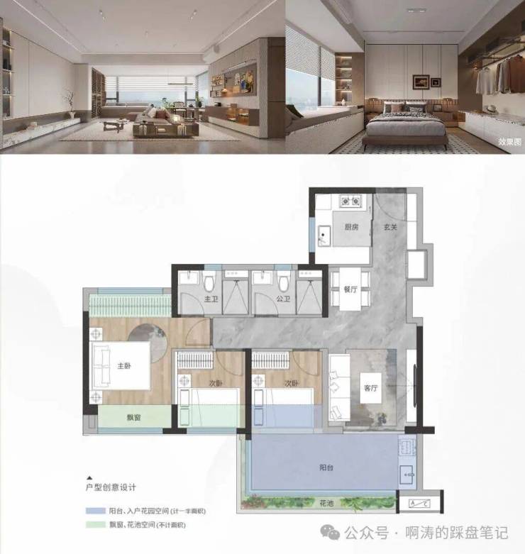 •主卧套房设计,270°瞰景飘窗