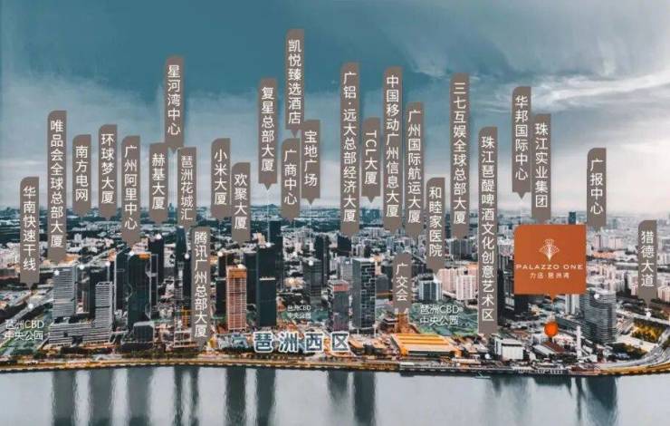 项目西面与广州塔并肩而立,距离世界级地标商圈广州塔广场仅约1.5公里,享受同步国际的顶奢资源。北望珠江新城CBD璀璨繁华,与亿级江景豪宅侨鑫汇悦台、广粤天地共享同一江境。楼下则是正在建设中的琶洲π艺术馆,将打造成琶洲一流商务文体核心地,营造艺术与生活密不可分的美学体验。