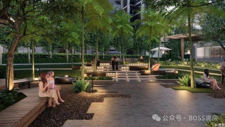 活力阳光草坪:参考日本星野OMO7酒店的设计灵感,打造约1300㎡社交草坪,形成独具特色的坐阶模块,可坐可躺,享受松弛氛围