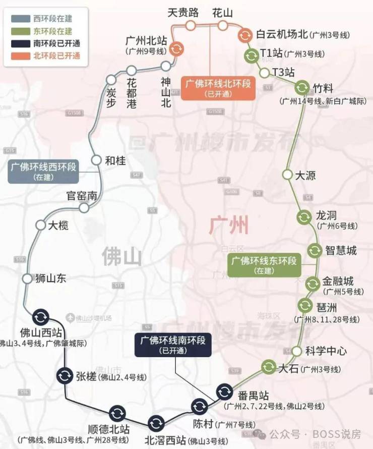 广佛环线东环目前已经建成通车,连接番禺、黄埔、海珠、天河、白云 5 个行政区,届时城轨 3 站可到琶洲;