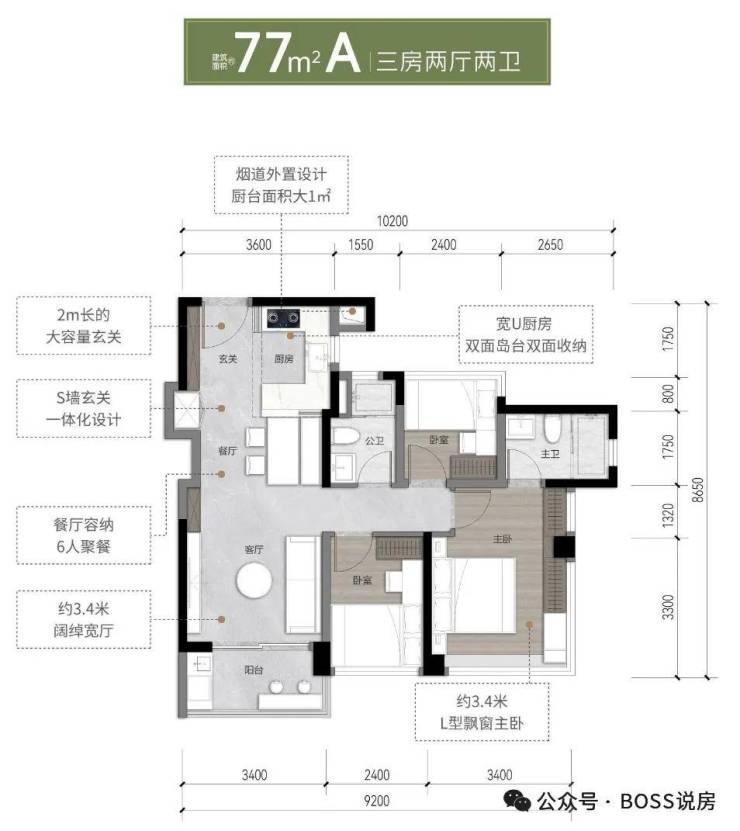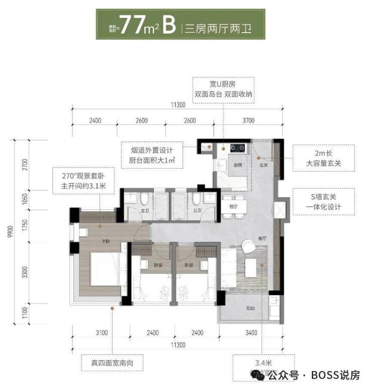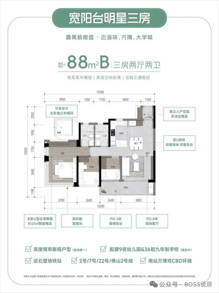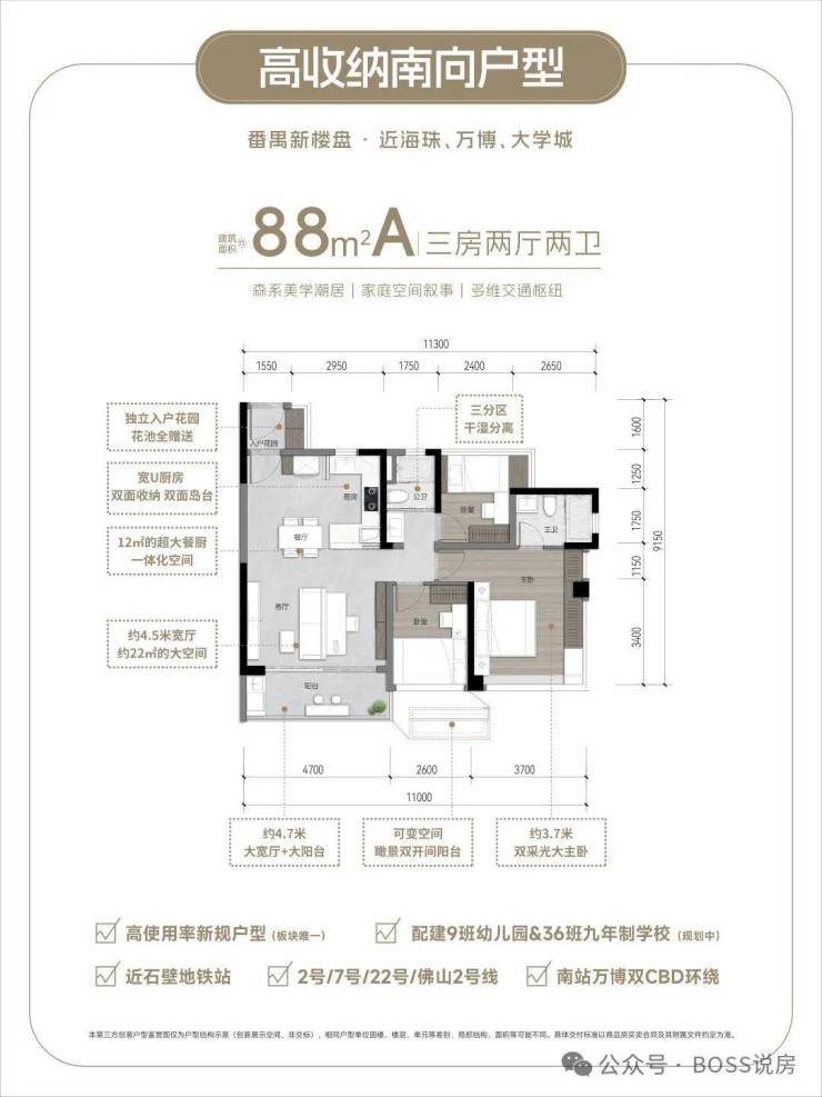 88㎡户型:7米超长阳台+12㎡餐厨一体化,满足家庭欢聚场景