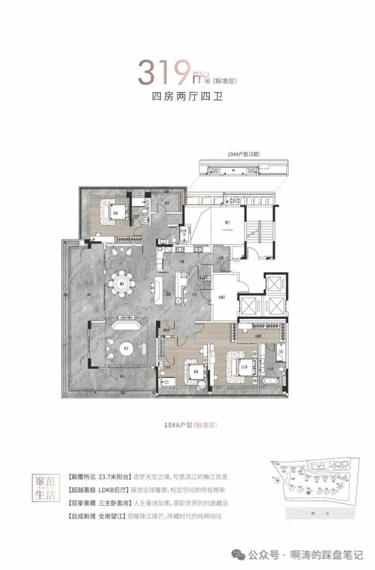 15栋三梯两户:276㎡和319㎡;