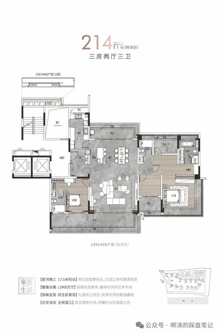 13-14栋三梯两户:两户214㎡和265㎡;