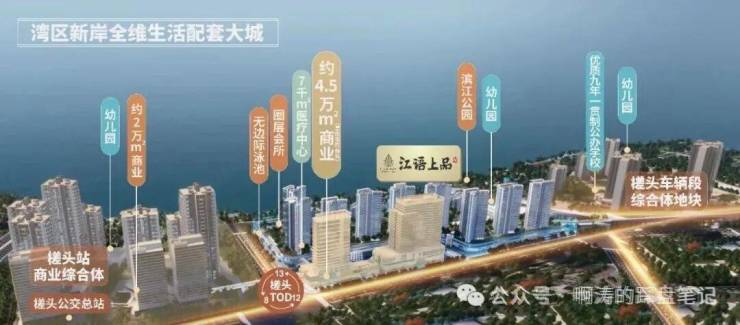 华为研发中心已经交付开园,未来将是华为全国科研人员的唯一研究中心,将有5000高新人才进驻,未来通过一带三产吸引更多上下游的高新客户人才聚居。待产业落地后,湾区新岸将实现约600亿生产总值,预计占据全区30%。