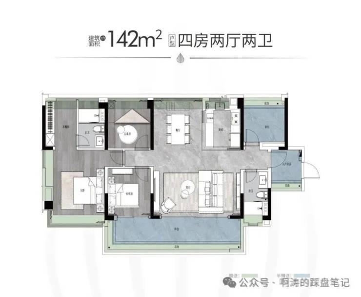 【户型面积】建面约125-142㎡四房两厅两卫/214-319㎡大平层