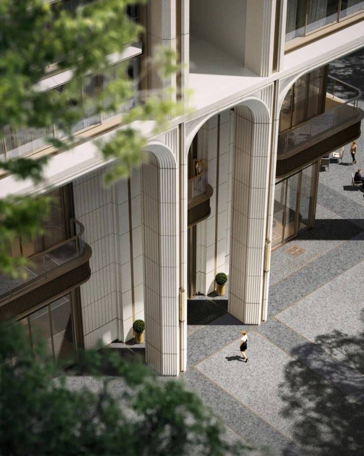 塔座部分将广州骑楼标志性的弧形拱券结构,与意大利殿堂级艺术大师卡洛·斯卡帕的精致叠级工艺巧妙融合,约14米奢阔挑高,每一次归家皆显威仪。