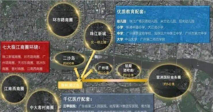 ○ 4大核心商圈:往北-珠江新城CBD、往南-客村商圈、往东-琶洲广州塔国际商圈、往西-海珠西商圈;