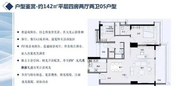 其中5-18层推120-143㎡四至五房,20-30层推220㎡大平层,整盘仅打造92套,主打都是改善类客群。项目与珠江直线距离约300米,东面有广州大道,视野比较开阔,预计东北面中高层户型可望江。