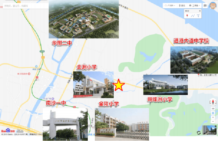 教育配套:金洲小学(约300m),南沙一中(约2km),金隆小学(约2km),蝴蝶洲小学、华师二附中(约3km)