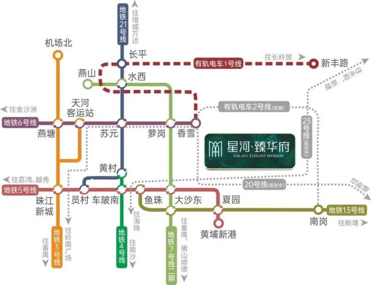 主干道:紧邻开创大道,北行 5 公里直达科学城香雪地铁站,南走接驳广源可达金融城、珠江新城,驾车出行便捷。