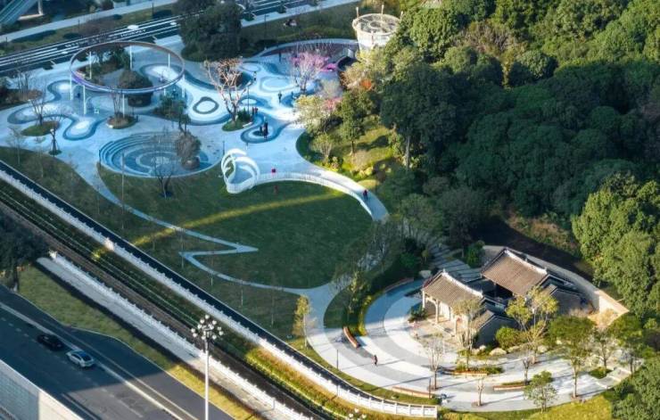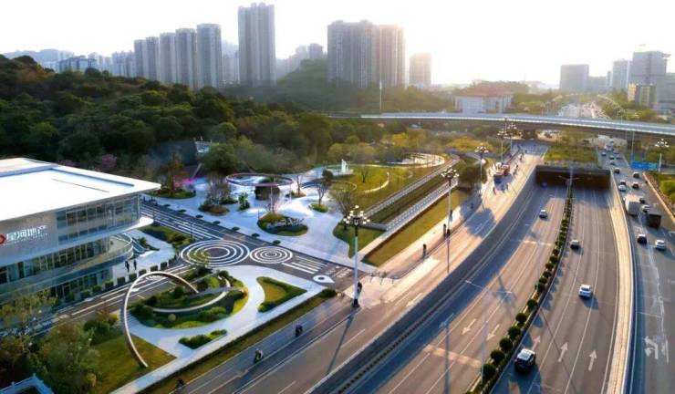 项目西拥约 1350 亩创新公园,东揽约 3000 亩山体,楼下古树公园环绕,周边 3km 范围内有 42 个公园,负氧离子浓度是珠江公园的约 20 倍,堪称 “天然氧吧”