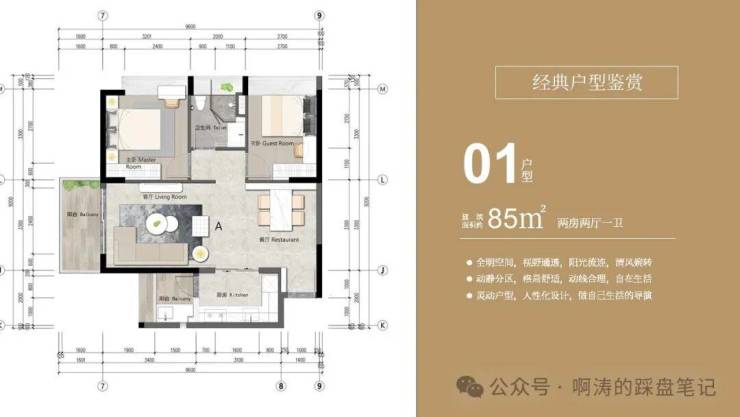 01户型 建面约85㎡ 两房两厅一卫