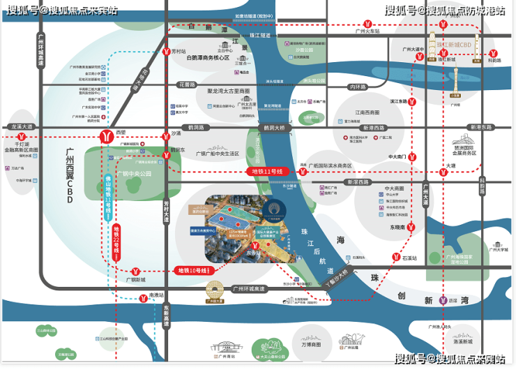 广州幸福湾坐落于白鹅潭CBD的黄金位置,这里是广州城市发展的重要核心区域,依傍珠江龙脉,拥有三江交汇的独特资源。作为广州未来的重点发展区域,白鹅潭CBD聚集了大量金融、商务及高端居住资源,交通网络四通八达。项目距离双高速、三地铁及一隧道枢纽仅几分钟路程,无论是前往市中心还是周边区域,都极为便利。