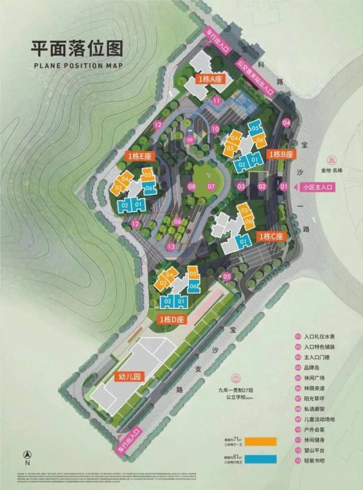 项目位于龙岗大运新门户,占地面积20431.93㎡,总建筑面积113860.41㎡,规划5栋29-33层高住宅组成,配建一所12班幼儿园,绿化率约40%,容积率4.0。其中,可售住宅共计677户,主推产品约71-81㎡ 带装修的超感功能三房