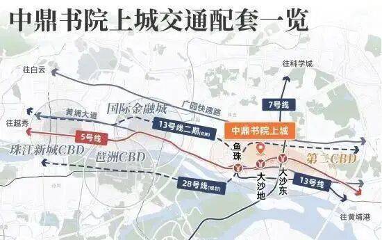 5号线大沙地站距离约800米,7号线二期大沙东站已开通,13号线裕丰围站也在规划之中,这三个地铁站都非常重要,构成了黄金3地铁交汇,同时,广园快速、黄埔大道、广佛高速,广州环城高速“三横一纵”路网环绕,无缝连接天河、越秀、荔湾等主城区,同时家楼下多条公交线路汇聚