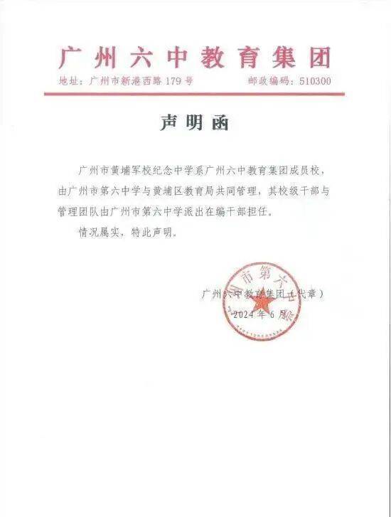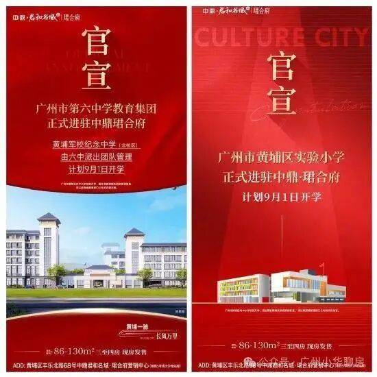 2024年4月30日,中鼎珺合府官宣广州市第六中学教育集团(黄埔军校纪念中学)进驻项目,该学校是广州市第六中学管理和办学的公立学校,现在已经开学。