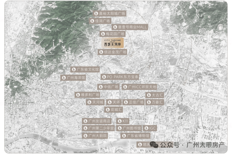 小区出门对面就是商业综合体信达天河金茂广场,周边几公里还有金铂天地、广百等商业配套