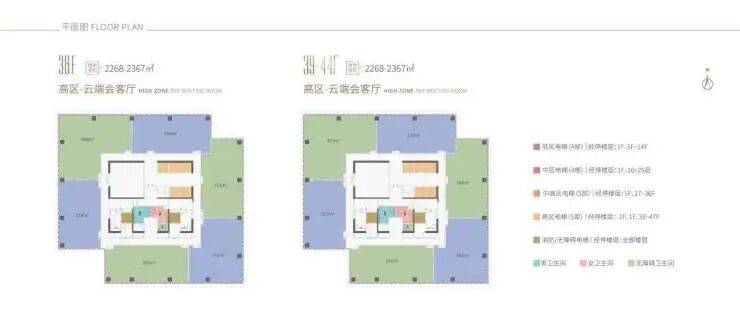 企业会客厅:38-44F:338-479㎡45-47F:1,427-1,596㎡(整层)