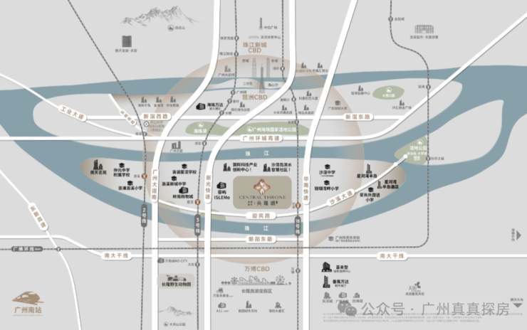 自驾周边是新光快速、华南快速/番禺大道、广州大道南,15分钟珠江新城、琶洲、海珠中心;10分钟万博核心,环城高速、南大干线两条横向路网,立体交通路网,便捷出行。