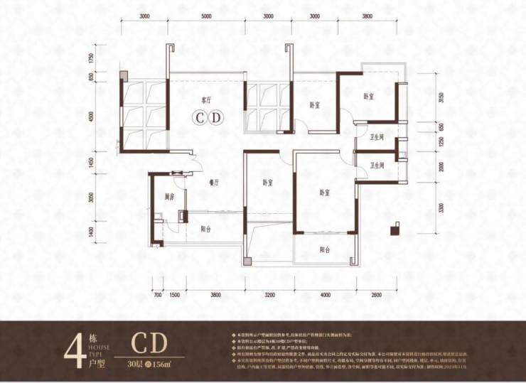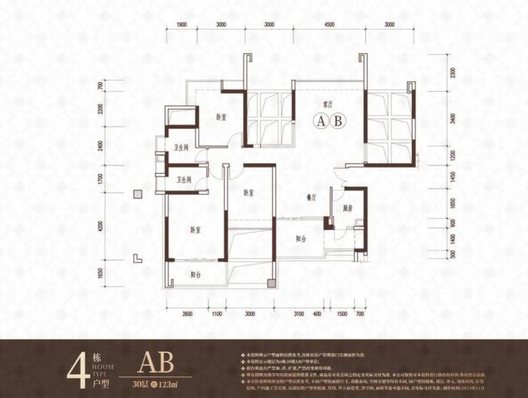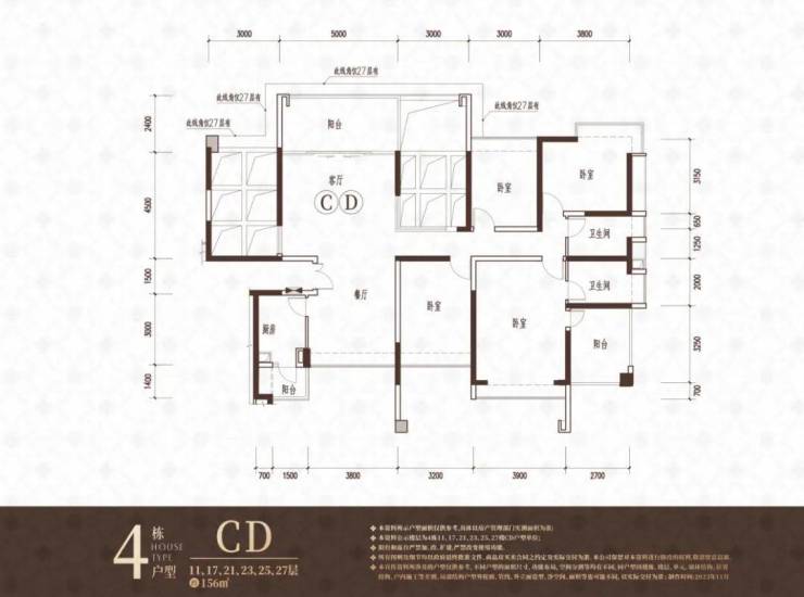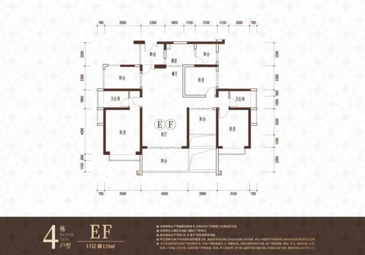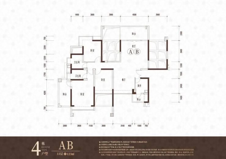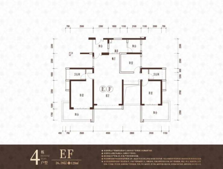 112-118㎡4房2卫850-940万 单价:7.2-8.1万