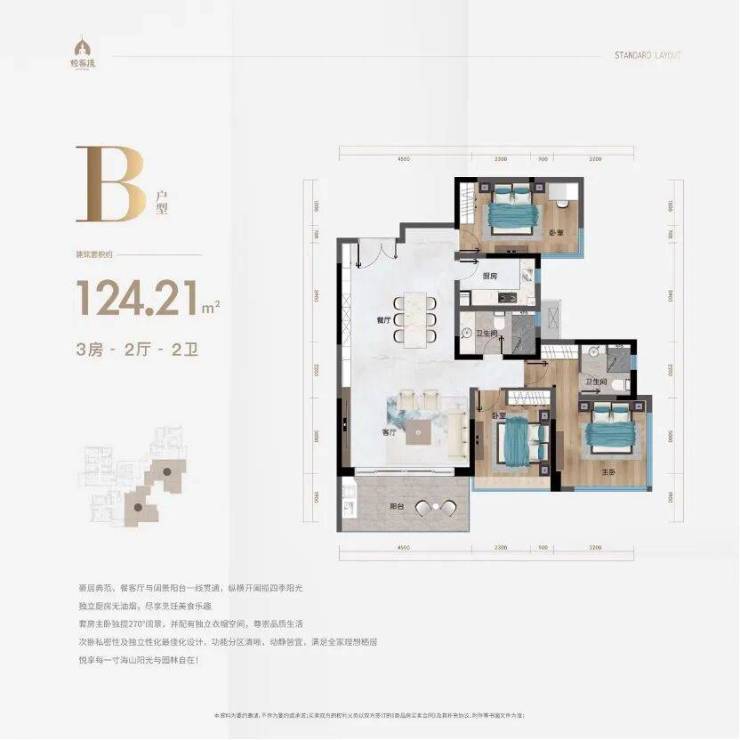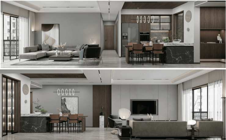 -116-146㎡三至四房:4.5米阔绰客厅,餐客独立分明,空间实用主义与仪式感并存。