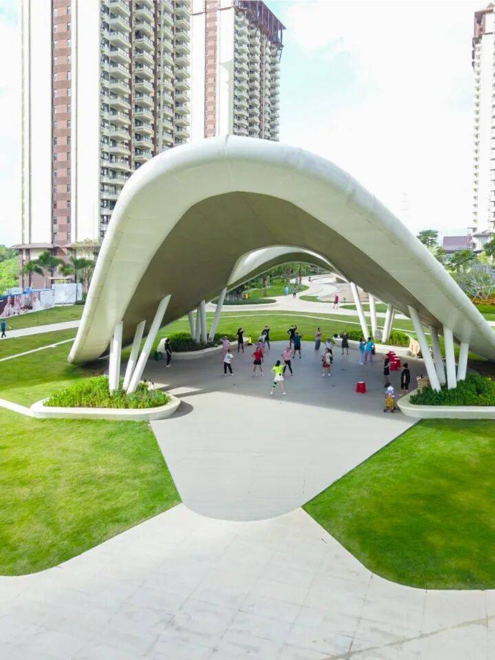 泳池+百年菩提树+大贝壳 多重景观